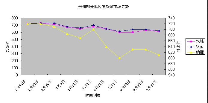 近日從貴州地區(qū)了解到,貴州噴吹煤市場略顯寬松,部分地區(qū)針對市場需求變化小幅下調(diào)噴吹煤價格。