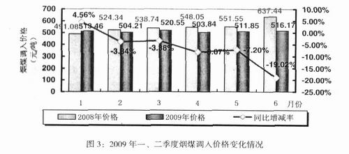 (1)從調(diào)入價(jià)格看,二季度煙煤價(jià)格相比一季度而言有較大幅度的回落,但整體上呈逐月回升的狀態(tài)(詳見(jiàn)圖3)。無(wú)煙煤價(jià)格逐月上升,上漲幅度達(dá)14.03%。