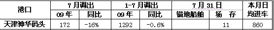 天津神華碼頭1-7月份煤炭調(diào)出統(tǒng)計