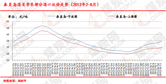 華東沿海煤炭運(yùn)輸市場(chǎng)繼續(xù)小幅上漲,自8月10日至8月17日,秦皇島港至寧波港(1.5-2萬(wàn)噸)煤炭海運(yùn)費(fèi)漲2.3元/噸至35.6元/噸;秦皇島港至上海港(4-5萬(wàn)噸)煤炭運(yùn)費(fèi)微漲0.9元/噸至30元/噸;秦皇島港至張家港(2-3萬(wàn)噸)煤炭運(yùn)費(fèi)略漲1.7元/噸至35.9元/噸。