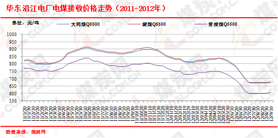 華東電廠煤炭接收方面,2012年9月上旬華東沿江電廠電煤接收價(jià)格4個(gè)月來首次出現(xiàn)上漲。除5800大卡大同煤價(jià)與上期持平外,其余煤炭接收價(jià)較上旬期有5-10元/噸的漲幅。其中,太倉(cāng)華能、南通華能、上海石洞二電廠接收5500大卡大同煤漲5元至675元/噸,接收5800大卡大同煤730元/噸;夏港電廠、揚(yáng)州二電接收5000、5500大卡蒙煤價(jià)格分別漲10元、5元至555元/噸、680元/噸;上海石洞一、天生港電廠接收5000、5500大卡貧瘦煤價(jià)格均漲10元/噸,現(xiàn)分別為560元/噸、610元/噸。近期國(guó)內(nèi)港口低熱值煤價(jià)格持續(xù)上漲,一來是前期產(chǎn)地低質(zhì)煤下跌幅度突出,煤企虧損供給減少,另一方面,進(jìn)入8月下旬至今,電廠發(fā)電量下降,很多電廠機(jī)組弱勢(shì)運(yùn)行,更多選擇低卡煤保持機(jī)組正常運(yùn)行即可,對(duì)低卡煤的需求也就增加。