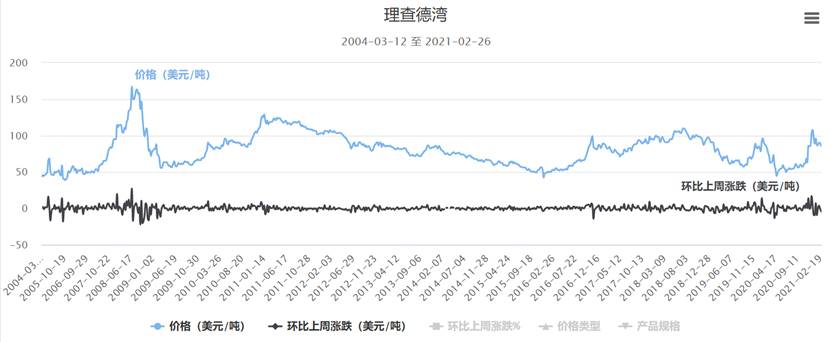 據(jù)globalCOAL交易平臺數(shù)據(jù)顯示,截至2021年3月5日當周,紐卡斯爾港、南非理查茲灣港動力煤價格較前一周大幅上漲,創(chuàng)2019年3月份以來新高,而歐洲ARA三港動力煤價格小幅下降。